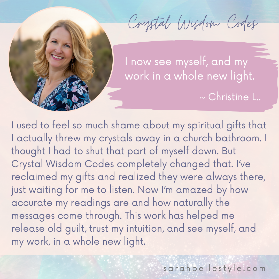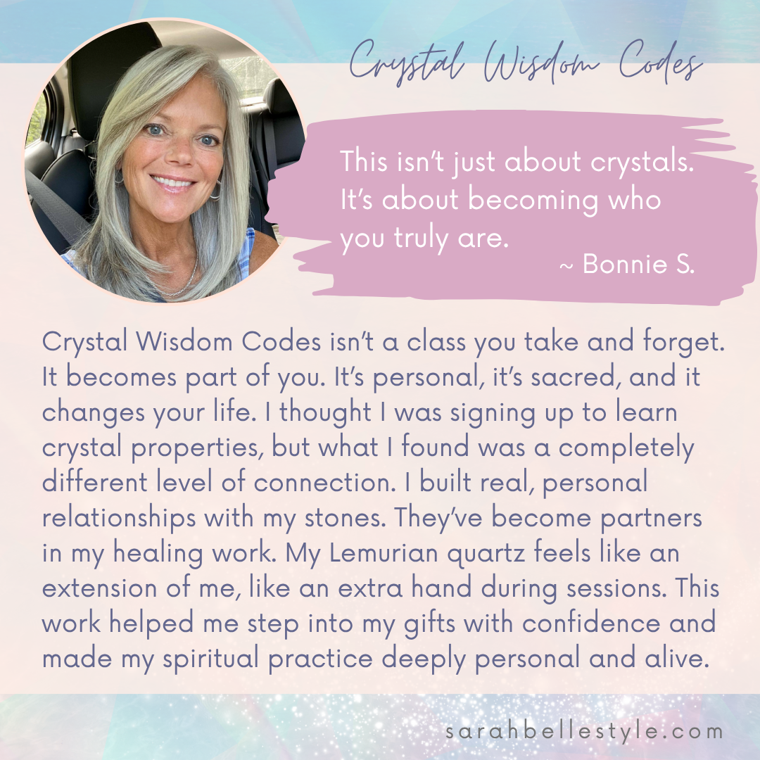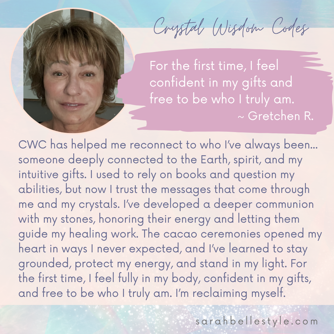Crystal Wisdom Codes is a 4-month shamanic crystal mentorship and certification program for energy healers, lightworkers, spiritual seekers, and crystal lovers. This immersive journey guides you to trust your intuition, stop second-guessing yourself, and work with crystals as spirit allies to expand your multidimensional awareness. Through direct revelation, shamanic practices, and sacred ceremony, you’ll awaken your unique medicine and experience true transformation while becoming a Certified Crystal Wisdom Codes™ Practitioner.